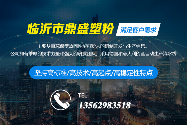 臨沂市鼎盛塑粉有限公司源于2015年3月,公司坐落于臨沂市河?xùn)|區(qū)后翟店工業(yè)園區(qū)內(nèi)。主要從事環(huán)保型熱固性塑料粉末的研制開發(fā)與生產(chǎn)銷售。公司擁有雄厚的技術(shù)力量和強(qiáng)大的研發(fā)團(tuán)隊。采用德國和意大利的全自動生產(chǎn)流水線,年生產(chǎn)各類高端環(huán)保塑料粉末5000余噸,其中出口2000多噸。